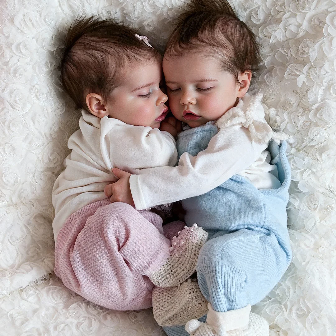 Lifelike Reborn Twins Boy and Girl 12'' Real Lifelike Baby Sleeping Reborn Doll Silicone Vinyl Newborns Debbie and Deborah